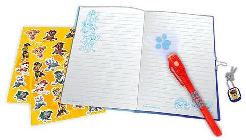 Paw Patrol magic pen journal by KiDS Licensing KiDS Licensing's journal provides the perfect space to write down thoughts, draw and spin stories. The included magic pen is the key to uncovering hidden secrets on the pages of the Paw Patrol, such as Chase, Marshall and Skye, which is sure to delight any little fan of the series. What's more, the journal closes with a padlock, so your child can keep