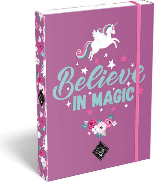 Szép szárnyas pegazus mintájú A5-ös méretű füzetbox lányoknak. Mérete: 22,6x3,5x17,6 cm. Szín: rózsaszín. Minőségi Lizzy Card termék. Az unikornisokat örökre a szívünkbe zártuk. Ezek a képzeletbeli lények a kislányok kedvence. Ha te is szereted őket, fedezd fel a Lizzy Card - Magical Beauty kollekcióját >>