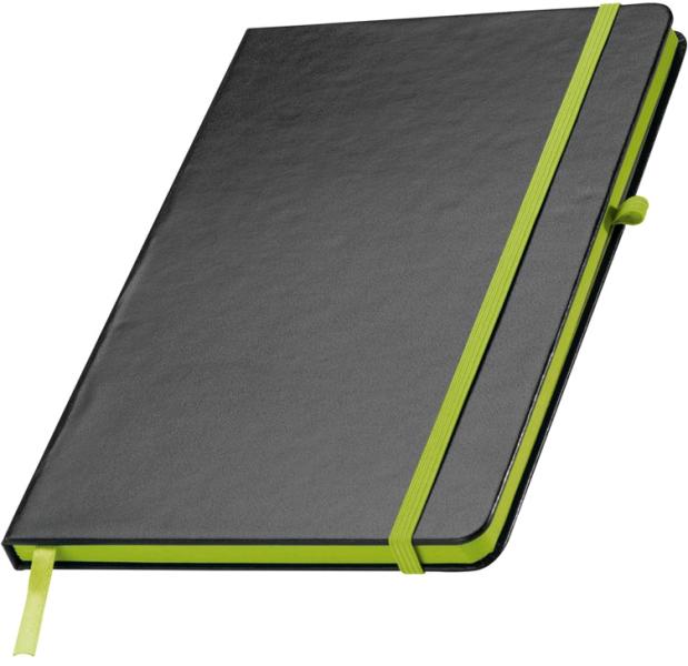 A5 vonalas jegyzetfüzet PVC borítóvaltolltartó hurokkalés színes könyvjelzővel ellátva160 vonalas oldallal Emblémázását vállaljuk.