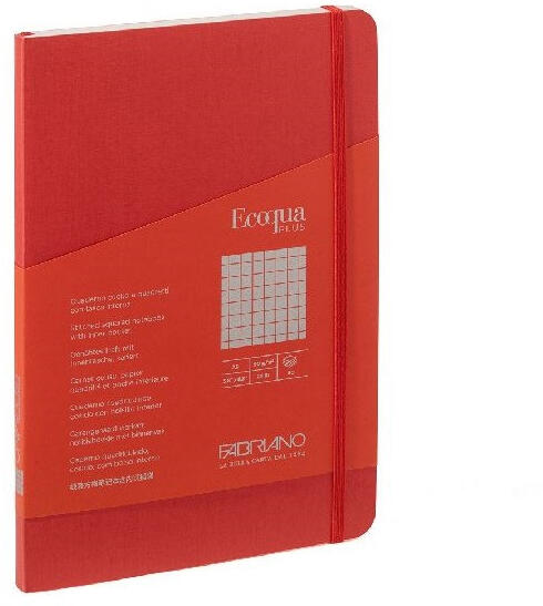 Fabriano Ecoqua Plus A5 80 lapos piros kockás notesz Kiváló minőségű notesz, 8 féle színben; 80 lapos, cérnakötésű, mely 180°-os nyitást biztosít; 90 g vastagságú elefántcsont színű kockás lapok; Belső tároló rekesz és könyvjelző szalag; Mérete: 14,8x21 cm; Certifikáció: FSC, TCF, ACID FREE, LONG-LIFE, HYDROPOWER