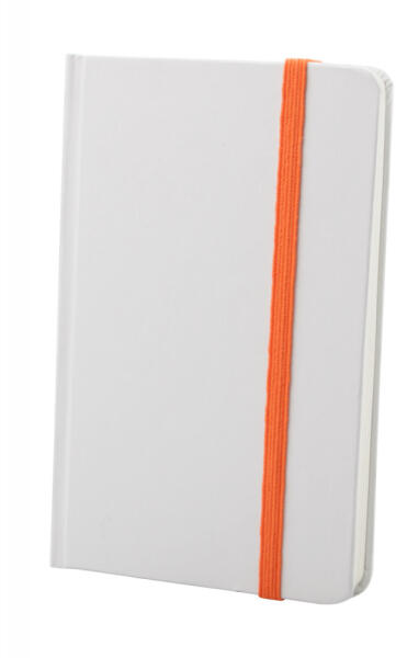 Fehér kartonpapír borítású jegyzetfüzet 80 sima lappal, színes gumipánttal zárható. A6 méretű.