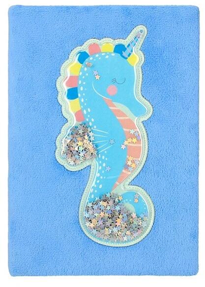 Csikóhalas plüss napló konfettivel Csikóhalas notesz, jegyzetfüzet A kék plüss naplón egy unikornis szarvú csikóhal szerepel, melyet csillogó konfettik tesznek izgalmassá. A kis tengeri élőlény lesz segítségedre, hogy a noteszben mindenféle okos gondolatokat, vagy szép rajzokat tudj lejegyezni. A minőségi szőrmés borítójú, lányos notesz széles körűen felhasználható,