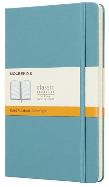Kiváló minőségű, elegáns megjelenésű Moleskine notesz. Ez az egyszerű, klasszikus közepes méretű vonalas notesz a Moleskine legnépszerűbb termékeinek egyike. Megbízható útitárs, írásra, gondolatok és futó ötletek rögzítésére termett, lekerekített sarkú kemény fedéllel, savmentes lapokkal, könyvjelzővel, záró gumival és tágítható belső zsebbel, amiben elhely