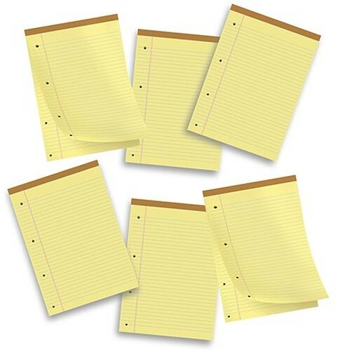 Fejben tűzött, ragasztott, 50 lapos jegyzettömb. 80g-os sárga belívek; lyukasztott, mikroperforált lapok, margóval.
