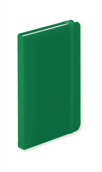 Műbőr borítású jegyzetfüzet 100 vonalas lappal, könyvjelzővel, gumipánttal zárható.