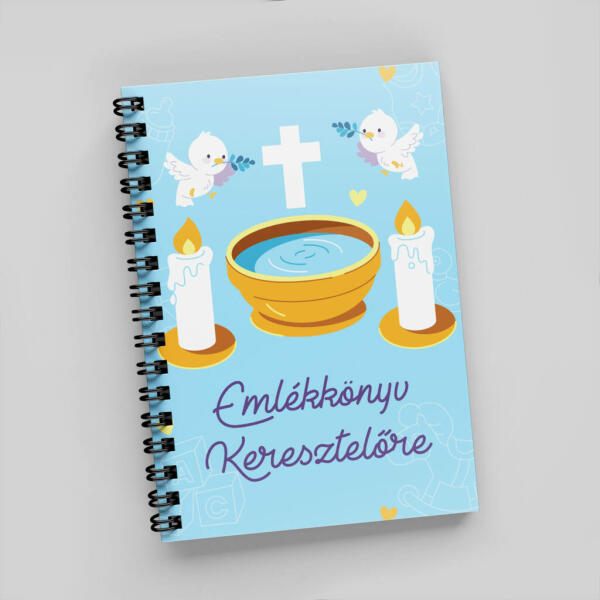 Világoskék színű, madárka mintás emlékkönyv keresztelőre, fekete színű fém spirállal. Kedves szülők, leendő keresztszülők! Eljött az idő, hamarosan itt a nap, amikor a kisbaba megkeresztelkedik. Mind az egyházi, mind a polgári keresztelés egy nagyon fontos szertartás, amikor az egész család összegyűlik ünnepelni és hivatalossá teszik a keresztanyát és a keresztapá