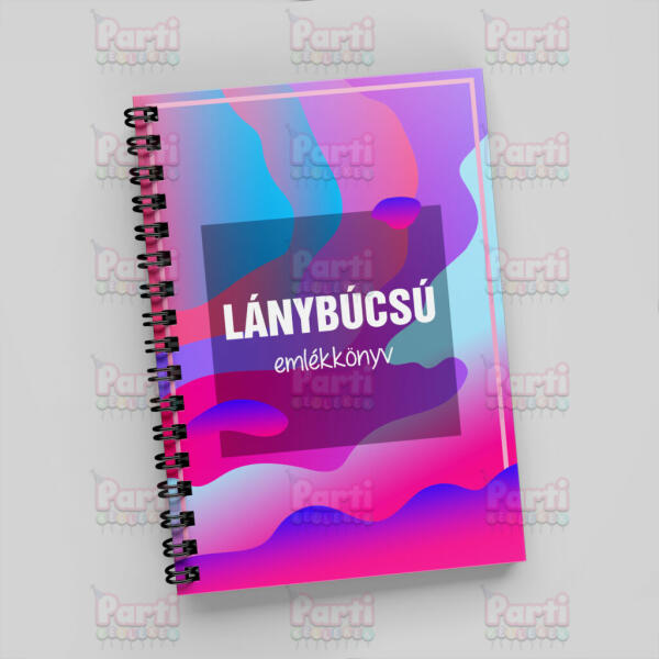 Színes hullám mintás emlékkönyv lánybúcsúra, fekete színű fém spirállal. Kedves lánybúcsú szervező! Legyen ez a legviccesebb, legragyogóbb és legegyedibb ünnepsége a menyasszonyodnak (és a résztvevőknek). Olyan buli, amire garantáltan mindenki sokáig emlékezni fog. Nem számít, hogy hol töltitek a lánybúcsút - otthon, mulatóban vagy a szabadban, mert a lényeg, hogy
