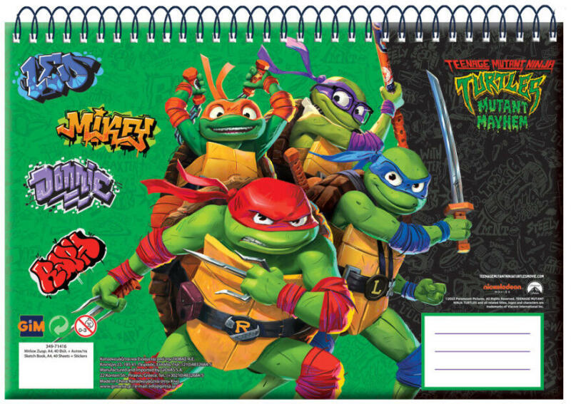 Ninja Turtles, Tini Nindzsa Teknőcök spirál vázlatfüzet, 30 laposMéret: A/4
