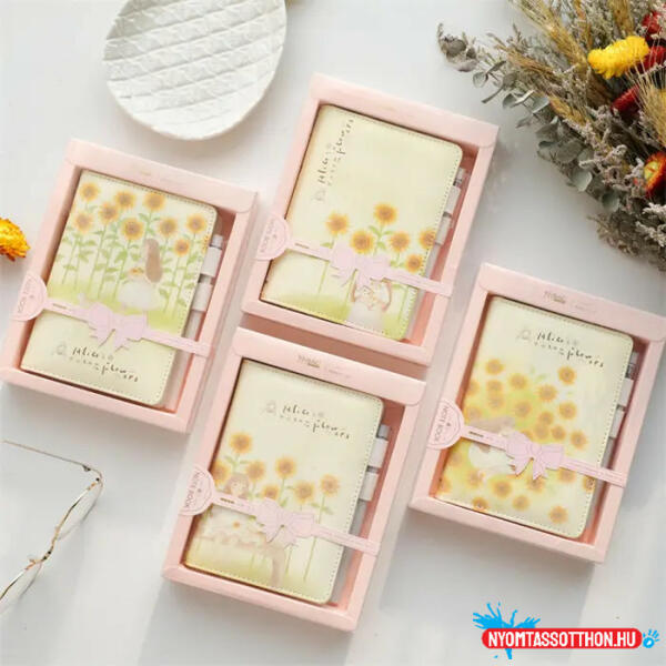 Gyönyörű napraforgós notesz cicával, kislánnyal - ajándékba is kiváló. Csomag tartalma: - notesz - toll - díszcsomagolásban