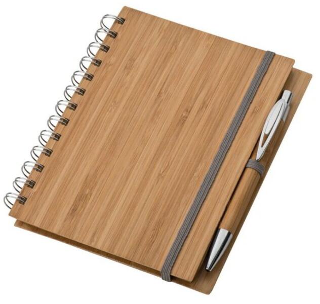 Trendi notesz igazi bambuszból készült borítóval, kéken író golyóstollal, amely szintén bambuszból készült. A jegyzettömb 70 újrahasznosított papírból készült lapot tartalmaz. termék méret: 14,5 × 18 × 1,7 cm Emblémázását vállajuk.