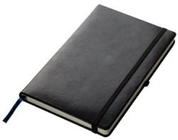 Vonalas jegyzetfüzet, A5 méretben, műbőr borítással. Gumival záródik, kékszínű szalag könyvjelzővel, kis gumival a szélén, melybe a tollát tűzheti. Méret: 13,9 × 21 × 2,2 cm Emblémázát vállaljuk.