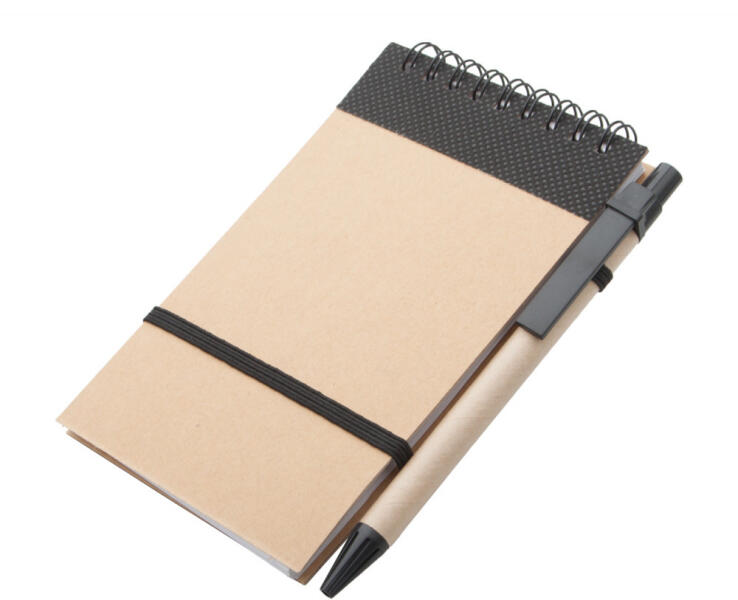 Újrahasznosított papírból készült spirál jegyzetfüzet 70 vonalas lappal, újrahasznosított karton golyóstollal. Kék tollbetéttel szállítjuk. A6 méretű.