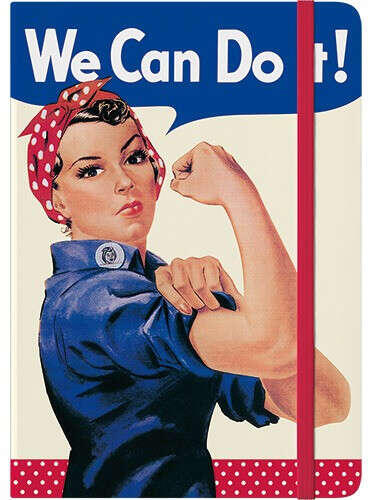We Can Do It - Jegyzetfüzet. Kiváló minőségű jegyzetfüzet A5-ös méretben 128 oldallal. Méret: 14,8 cm x 21,0 cm. Keménytáblás dombornyomott motívummal praktikus belső zsebbel.