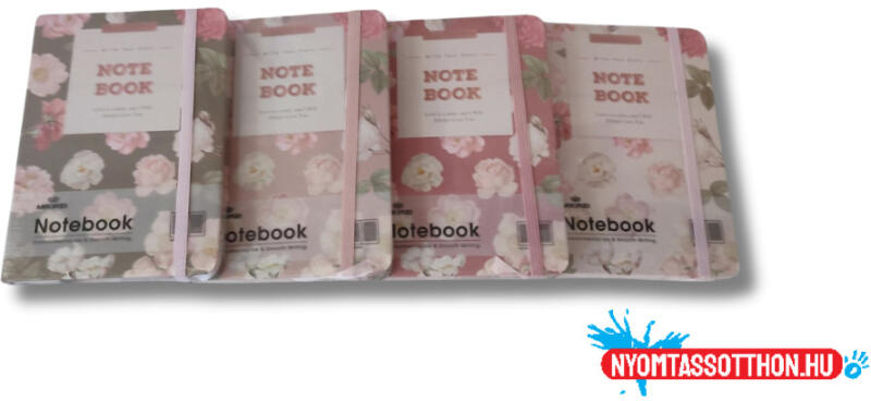 A/5 -ös jegyzetfüzet színben hozzáillő gumipánttal és könyvjelző szalaggal 96 vonalas lap, 60g/m2 Termék méret: 21 × 1,2 × 14,8 cm. Feliratozását vállaljuk.