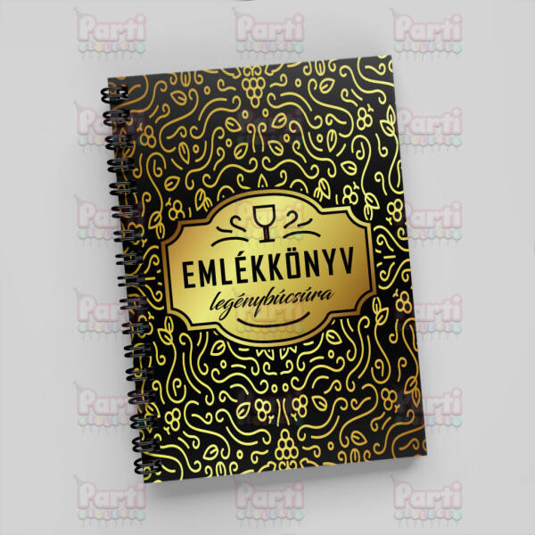 Fekete-sárga színű, elegáns mintás emlékkönyv legénybúcsúra, fekete színű fém spirállal. Kedves legénybúcsú szervező! Legyen ez a legviccesebb, legragyogóbb és legegyedibb ünnepsége a vőlegénynek (és a többi résztvevőnek). Olyan vad buli, amire garantáltan mindenki sokáig emlékezni fog. Nem számít, hogy hol töltitek legénybúcsút - otthon, kocsmában vagy ócska