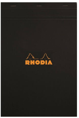 Jegyzettömb Clairefontaine Rhodia Black A/5 80 lapos vonalas margós Fejben tűzött jegyzettömb fekete fedlappal margós, vonalas lapokkal A/5-ös méret 80 lapos