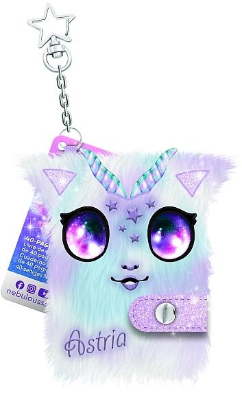 Nebulous Stars szőrmés mini jegyzetfüzet - Astria Nebulous Stars napló kulcstartóval A Nebulous Stars különleges mini naplója puha, szőrmés és extra cuki, kompakt méretének köszönhetően bárhová magaddal viheted. A napló patentos pánttal záródik, 40 db lapot tartalmaz. Találsz rajta egy kulcstartót is, így táskadíszként vagy kulcsaid tárolására is használhatod. A min