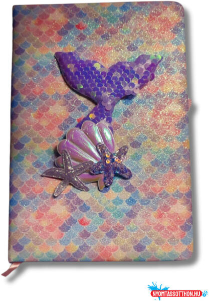 Csillámos Sellős Keményfedeles Notesz - A5 Méret, Színes Lapszéllel és Gumis Tolltartóval Engedd szabadjára a képzeleted ezzel a varázslatos sellős noteszszel! A domború, csillámos borító káprázatos megjelenést kölcsönöz, miközben a színes lapszélek és a mintás margók még különlegesebbé teszik a jegyzetelés élményét. A belső vonalas lapok segítenek rendszerezn
