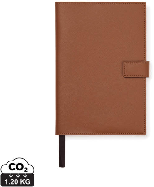 A5 jegyzetfüzet, PU borítással, 190 oldalas, sima fehér lapokkal. Színes gumis pánttal, könyvjelzővel és tolltartó hurokkal ellátva. Emblémázását UV-LED nyomtatással javasoljuk.