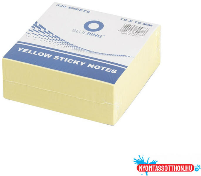 Jegyzettömb öntapadó, 76x76mm, 320lap, kocka Bluering® , sárga Ideális rövid üzenetekhez, jegyzetekhez. Szinte minden felületen tapad és könnyen visszaszedhető. Feltűnő élénk színű, hogy ne vesszen el az információ.