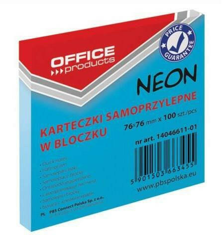 Öntapadó jegyzettömb 76x76 mm méretű címkék, neon színek, 100 lap/tömb. .