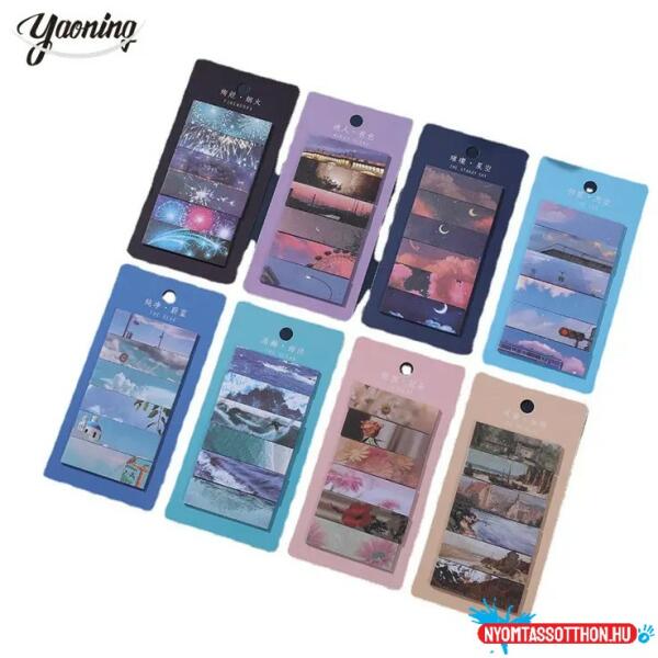 Jegyzettömb: 70 gm-os fehér papírból készült, felső részén ragasztott, 50 lapos. Méret: 80x130 mm.