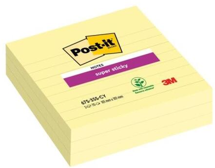 Post-it® line öntapadó betét nagy formátumban sárga színben. Speciális ragasztónak köszönhetően egyenetlen felületen is megőrzik a leveleket, és lehúzás után sem hagynak ragasztónyomot. Méretek 101 x 101 mm. Jegyek száma 3x70.