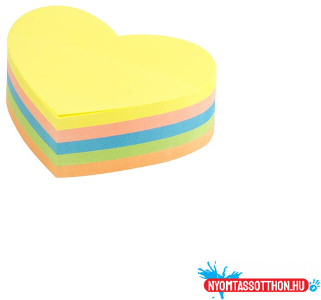 Jegyzettömb öntapadó, szív alakú, 250lap, Bluering® 5 klf. neon szín Ideális rövid üzenetekhez, jegyzetekhez. Szinte minden felületen tapad és könnyen visszaszedhető. Feltűnő élénk színű, és formájú, hogy ne vesszen el az információ.
