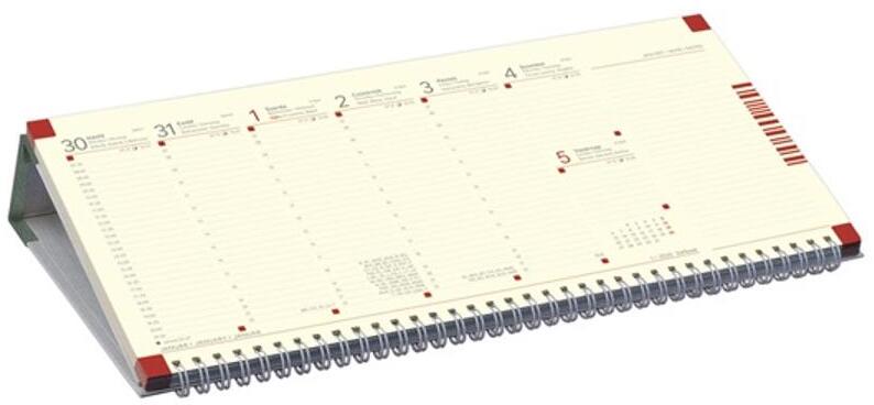 Műbőr táblával készült, chamois (krémszínű) tömbös, fekvő asztali naptár, perforált jegyzettömbbel. 54 lap, heti beosztás, összesítő éves naptár (aktuális+következő). Vak- vagy présfólianyomással emblémázható a tábla gerincén (reklámfelület: 330x50 mm). Méret: 325x155 mm Szavatosság: a jogszabályi előírások szerint. A gyártó/első EU forgalmazó adatai: N