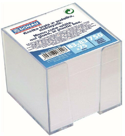 Kockatömb DONAU 9,2x9,2 cm tartóban nem ragasztott fehér Környezetbarát, nem ragasztott kockatömb praktikus átlátszó tartóban. Feljegyzésekhez, emlékeztetőkhöz vagy üzenetek hagyására irodában vagy otthon egyaránt használható.