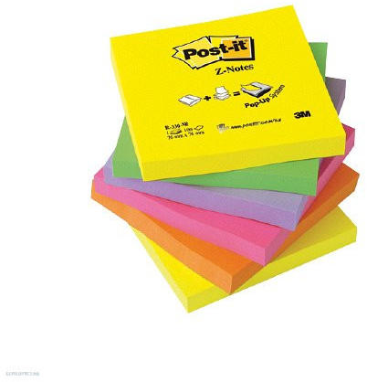 Post-it® jegyzettömb adagolók utántöltésére. A harmonika kialakítású Z-jegyzettömbök egymás után egy kézzel kihúzhatóak az adagolóból. Egyetlen üzenet, vagy ötlet sem veszik el, mert Ön egyszerűen és kényelmes jegyzetelhet, akár telefonálás közben is. A legnépszerűbb színek egy csomagban. .