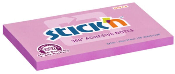 Stick`N 360° 76x127 mm 100 lap pink öntapadó jegyzettömb Egyedi szabadalmaztatott technológia - négyzet alakú ragasztócsík. Jegyzeteit bármilyen irányban írhatja. Erősebb tapadás a különböző felületekre.