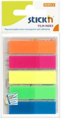 Átlátszó és írható műanyag öntapadó oldaljelölők -egyszerű jelölés és rendszerezés -ragasztómaradvány nélküli használat - 5 féle élénk neon szín