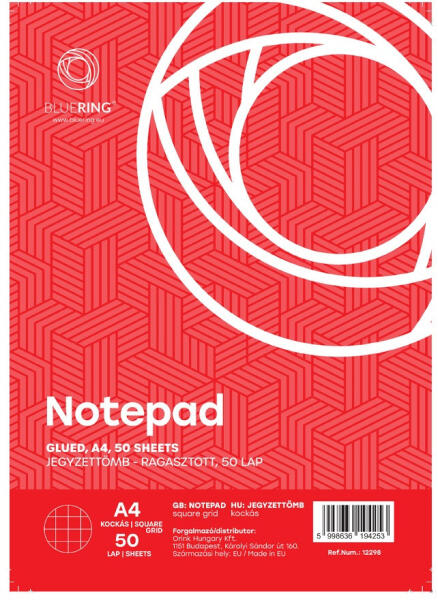 JEGYZETTÖMB A4 50LAPOS RAGASZTOTT KOCKÁS 20,2X30,2CM FELÜL RAGASZTOTT, 10DB/CSOMAG, 70gr Katalóguskód: 12298GPSR: Orink Hungary Kft. ; H-1151 Budapest, Károlyi Sándor út 160. ; info@orinkhungary. hu; https://orink. hu/