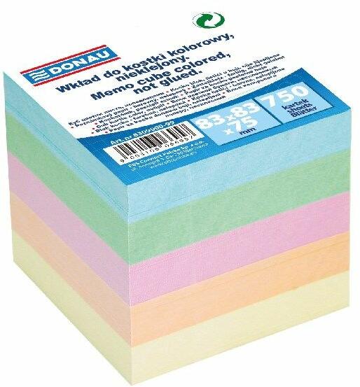 Nem ragasztott, környezetbarát kockatömb pasztell vegyes színekben. Papír tartó utántöltésére. Feljegyzésekhez, emlékeztetõkhöz vagy üzenetek hagyására irodában vagy otthon egyaránt használható.