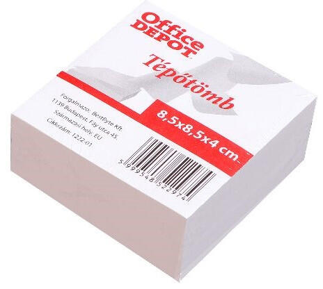 Office Depot 8,5 x 8,5 x 4 cm tépőtömb Fehér színű, papír tépőtömb 8,5 x 8,5 x 4 cm méretben vonalazás nélkül