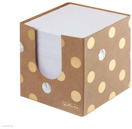 Fehér-arany nyomásmintával felületnemesített keménykarton kockablokk tartó a Herlitz Pure Glam családjának része. 9 x 9 x 9 cm-es méretben, 700 lapos, hófehér, 80 g/m2 -es famentes kockablokkal. .