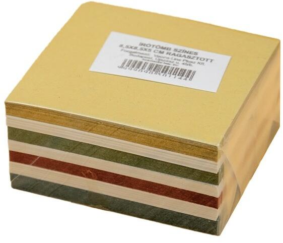 Színes papírból készült, egy oldalon ragasztott, 8,5x8,5x5 cm-es méretben. Kiszerelés: 12 tömb/csom.