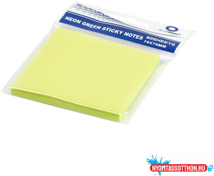 Jegyzettömb öntapadó, 76x76mm, 80lap, Bluering® , neon zöld Ideális rövid üzenetekhez, jegyzetekhez. Szinte minden felületen tapad és könnyen visszaszedhető. Élénk neon színekben, hogy ne vesszen el az információ.