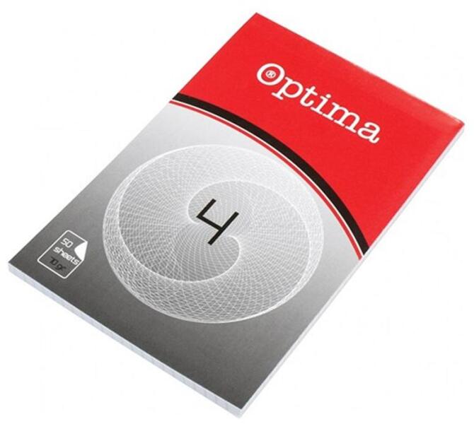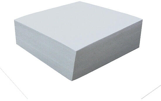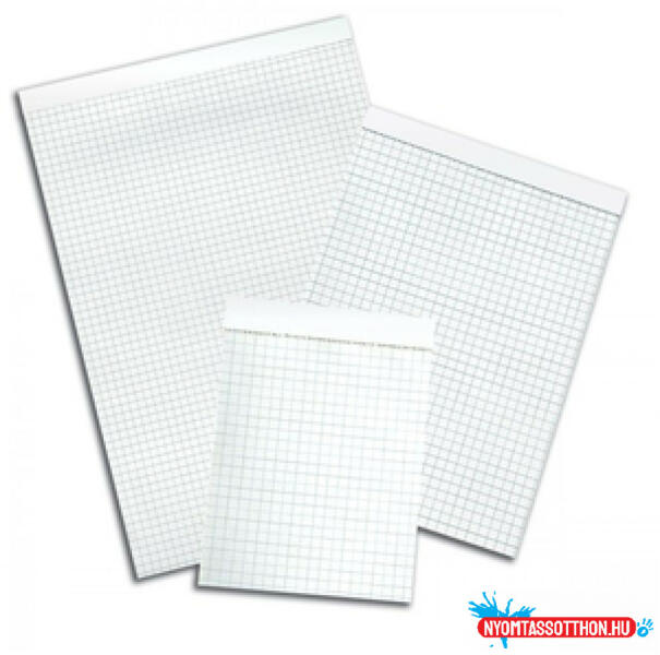 Jegyzettömb: 70 gm-os fehér papírból készült, felső részén ragasztott, 50 lapos. Méret: 90X145 mm.