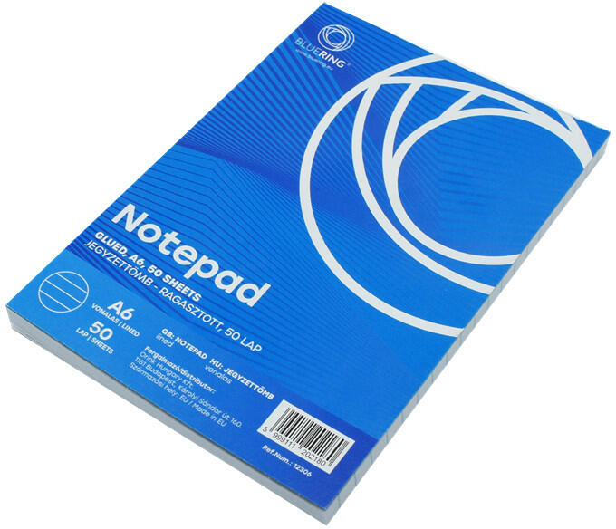 JEGYZETTÖMB A6 50LAPOS RAGASZTOTT VONALAS 10X15CM, FELÜL RAGASZTOTT, 10DB/CSOMAG, 70gr Katalóguskód: 12306