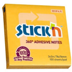 Stick`N 360° 76x76 mm 100 lap narancssárga öntapadó jegyzettömb Egyedi szabadalmaztatott technológia, négyzet alakú ragasztócsík. Jegyzeteit bármilyen irányban írhatja. Erősebb tapadás a különböző felületekre. Tömbönként 100 lap