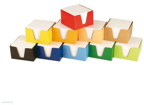 9 x 9 cm-es fehér kockatömb, színes tartóban. .