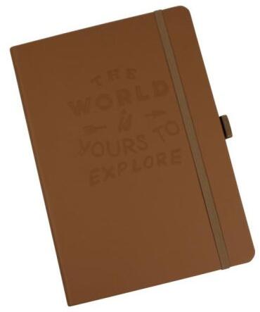 Kültéri jegyzetfüzet A5, négyzet. Vízálló borító design dombornyomással, 56 lap vízlepergető papír, 120 g/m2. Tollhurokkal, gumiszalaggal és archív zsebbel. Szín barna.