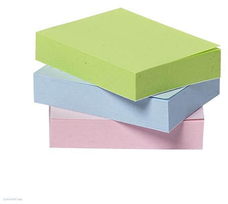 Öntapadós pasztell színű jegyzettömbök újrahasznosított papírból. A műanyagmentes dobozban 3 különböző színű jegyzettömb található: rózsaszín, kék, zöld. 4 x 3 x 100 lap, lapméret 38x51 mm. .