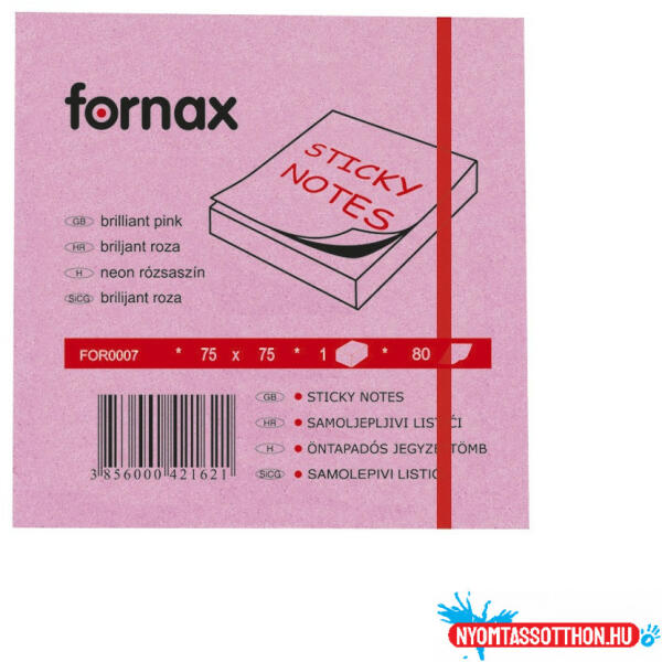 Jegyzettömb öntapadó, 75x75mm, 80lap, Fornax neon rózsaszín Ideális rövid üzenetekhez, jegyzetekhez. Szinte minden felületen tapad és könnyen visszaszedhető. Feltűnő élénk színű, hogy ne vesszen el az információ.