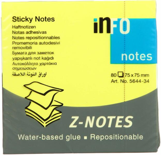 -üzenethagyásra ideális -5 különbözõ neon színbõl összeállítva -kiváló tapadás -méret: 75x75 mm -400 lap/csomag