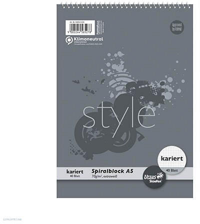 Spirálos, 40 lapos jegyzettömb A5-ös méretben. 70 g/m2 grammsúlyú, kockás lapokkal. .