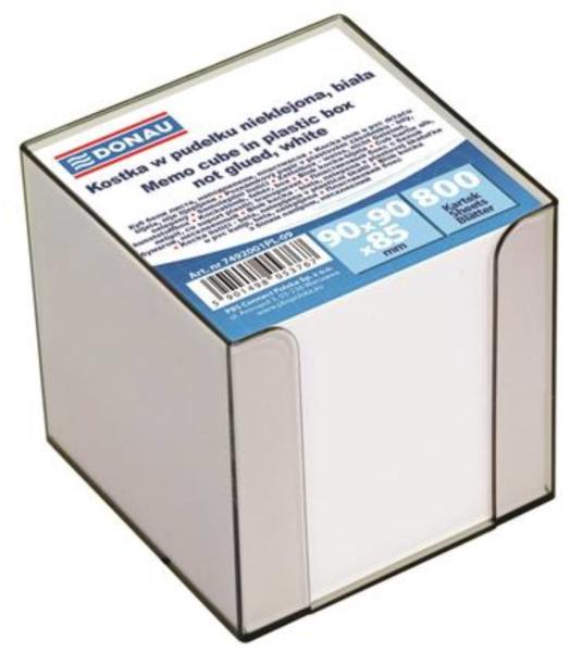 Kockatömb, 90x90x85 mm, adagolóval, DONAU (D749209) Jegyzetre fel! -üzenethagyásra, feljegyzésekhez az irodában és otthon -90x90 mm fehér jegyzetlapok áttetsző, műanyag adagolóban -800 lap/tömb (nem ragasztott) -utántölthető (D830209)