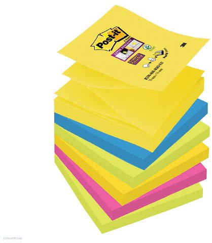Post-it® Super Sticky Z-jegyzettömb, adagolók utántöltésére. A harmonika kialakítású Z-jegyzettömbök egymás után, egy kézzel kihúzhatóak az adagolóból. .